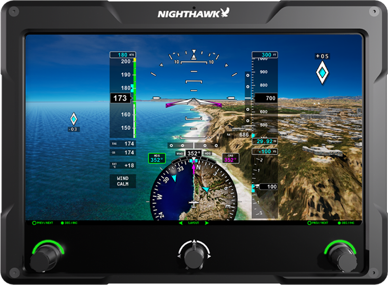 The 11.6” and 7” displays can customize how information is displayed –  split screen PFD/MFD, or full screen – with the touch of a finger. The included MCU will support two displays.  An additional MCU in the NEST would support up to 4 displays of any size.