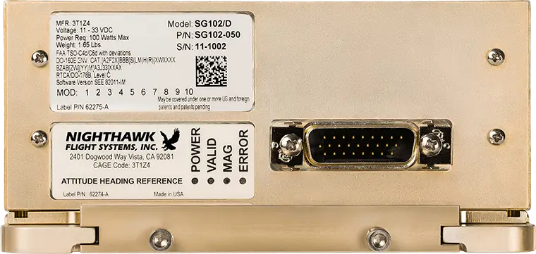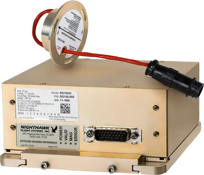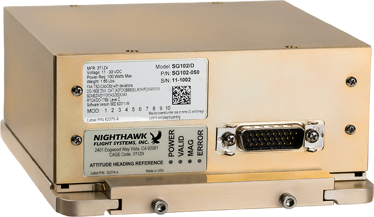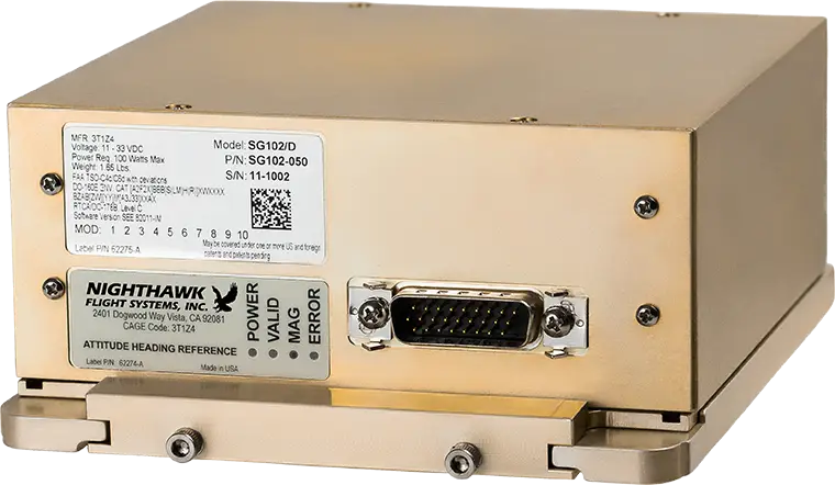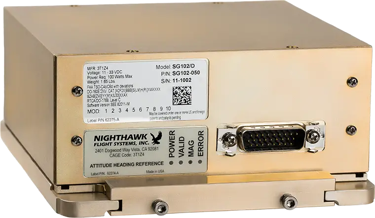 D, for Digital. The SG102/D Attitude Heading Reference System (AHRS) is identical to the SG102 (MOD2) without the analog interfaces. It’s lighter in weight and lighter in price. The SG102/D is designed for non-KG102 equipped aircraft and ideal for new equipment installs.
